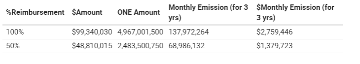 Proposal tersebut menjelaskan bahwa tim Harmony akan menambah pasokan token ONE baru sebanyak 4,97 miliar token. Nilai tersebut setara dengan emisi bulanan selama 3 tahun dari 138 juta token. Jumlah tersebut akan dicetak, jika ternyata dalam pemungutan suara yang akan digelar disepakati bahwa kompensasi harus 100%.