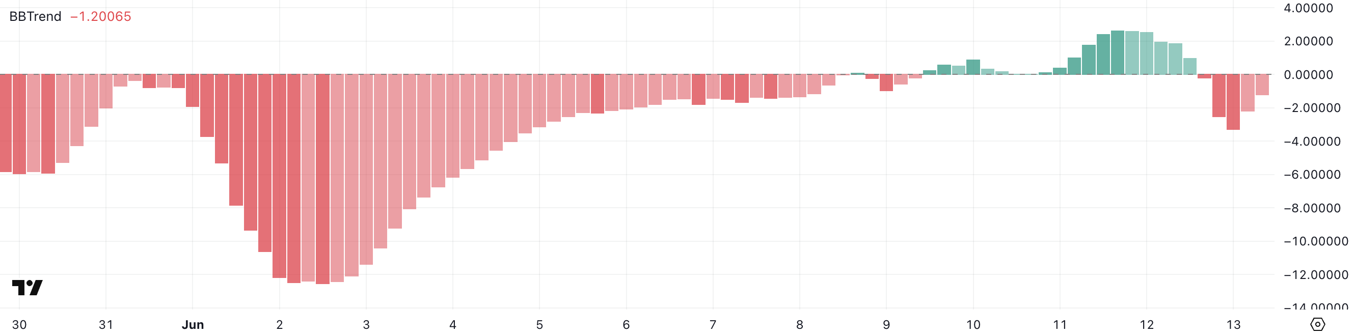 BBTrend Hedera kini berada di -1,2, pulih dari -3,27 sebelumnya hari ini namun masih di bawah 2,63 yang terlihat dua hari lalu.