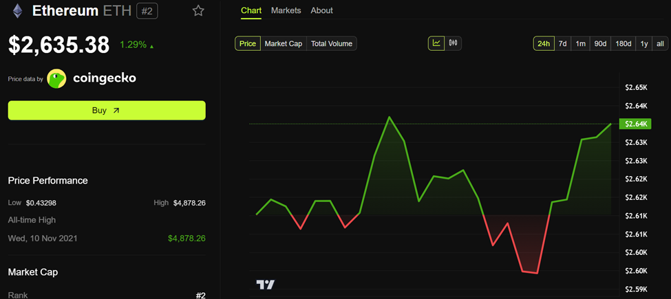 Pada waktu publikasi, ETH diperdagangkan di kisaran US$2.635. Artinya, transfer tersebut setara dengan lebih dari US$263.500.