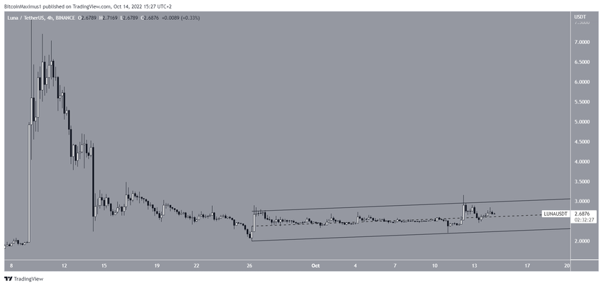 Sama seperti OKB, Terra (LUNA) telah diperdagangkan di dalam ascending parallel channel sejak 27 September. LUNA berusaha untuk menembus channel tersebut ketika 12 Oktober. Akan tetapi, percobaan itu gagal. LUNA sekarang sedang dalam proses menurun di bawah bagian tengah channel. Alhasil, kemungkinan besar LUNA akan mengalami breakdown.