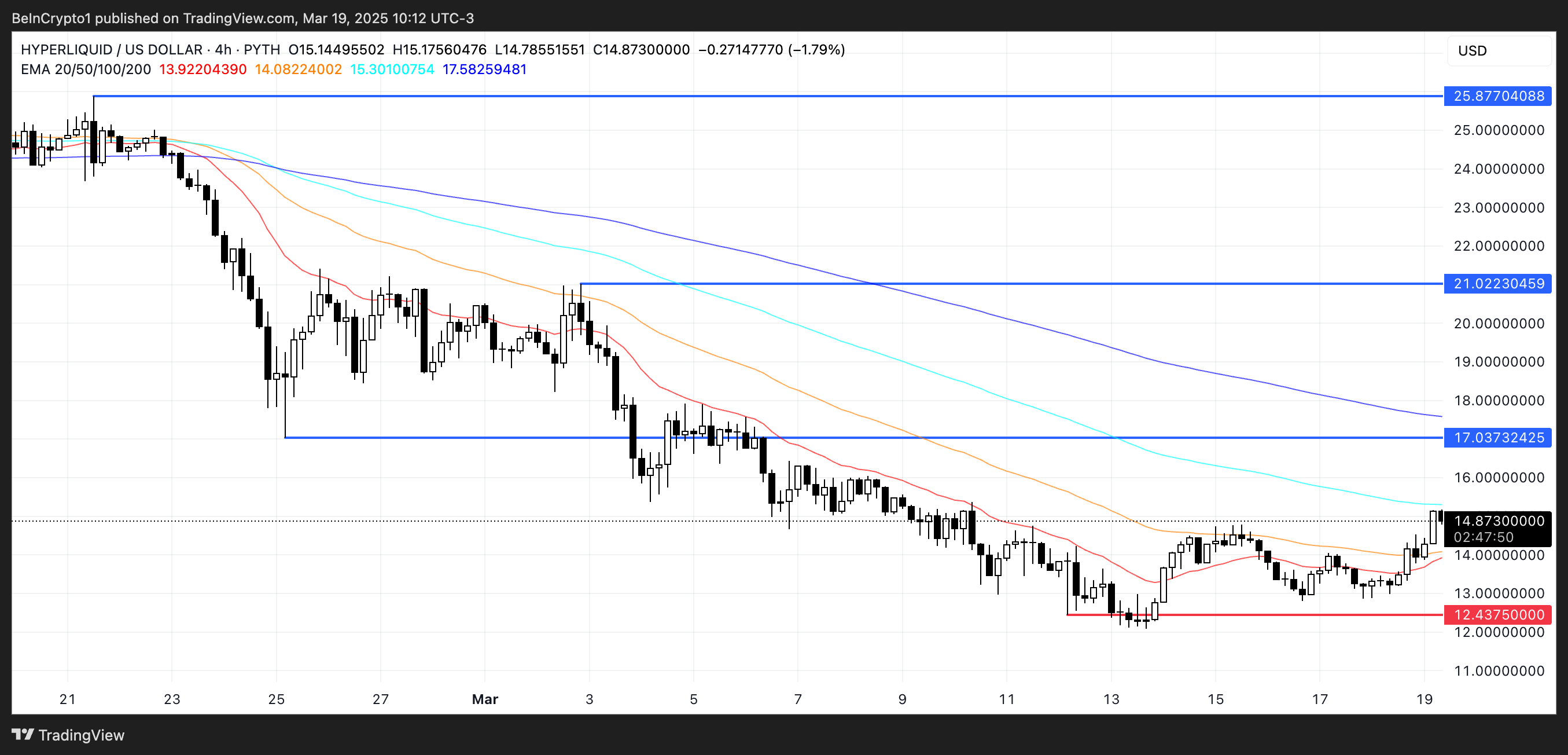Golden cross biasanya mengisyaratkan pergeseran momentum bullish yang signifikan, yang bisa mendorong HYPE untuk menguji resistance langsungnya di US$17. Jika level ini berhasil ditembus, maka peluang bagi HYPE untuk melaju ke US$21 semakin terbuka lebar.
