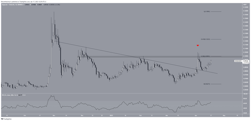 Sebelumnya, harga DOGE sudah turun di bawah garis descending resistance sejak November 2022. Garis ini tercatat telah menimbulkan banyak penolakan, dan yang paling baru tercipta pada tanggal 2 April lalu.