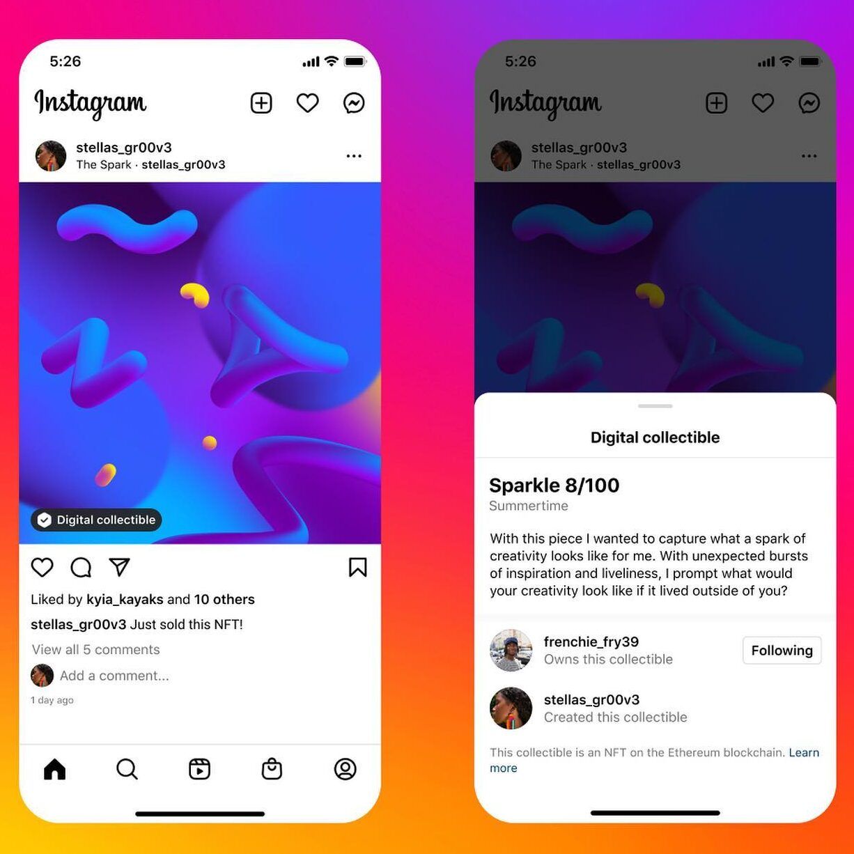 Mark Zuckerberg pada 9 Mei 2022 mengonfirmasi bahwa Instagram akan mulai menguji fitur yang membuat sejumlah creator dan kolektor non-fungible token (NFT) dapat menampilkan koleksi NFT mereka pada pekan ini.