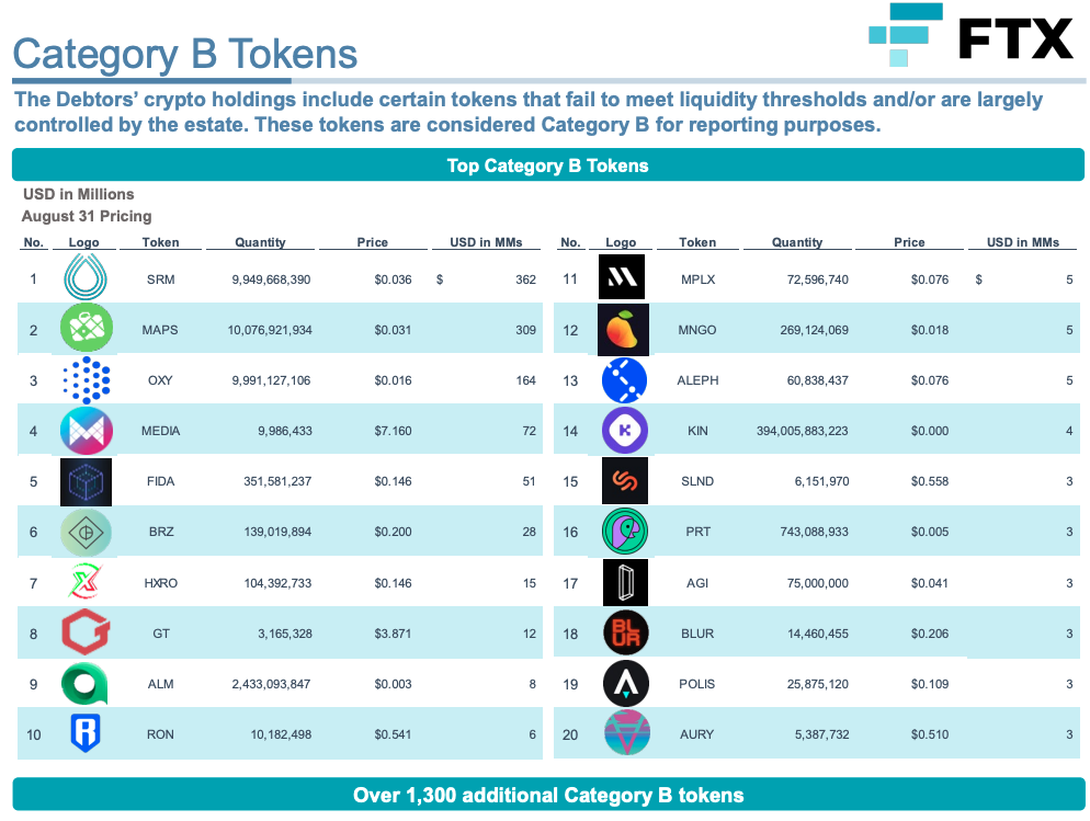 Selain itu, FTX memiliki lebih dari 1.300 token lainnya. Kepemilikan token-token ini dinilai gagal memenuhi ambang likuiditas karena sebagian besar token tersebut dikuasai oleh FTX.