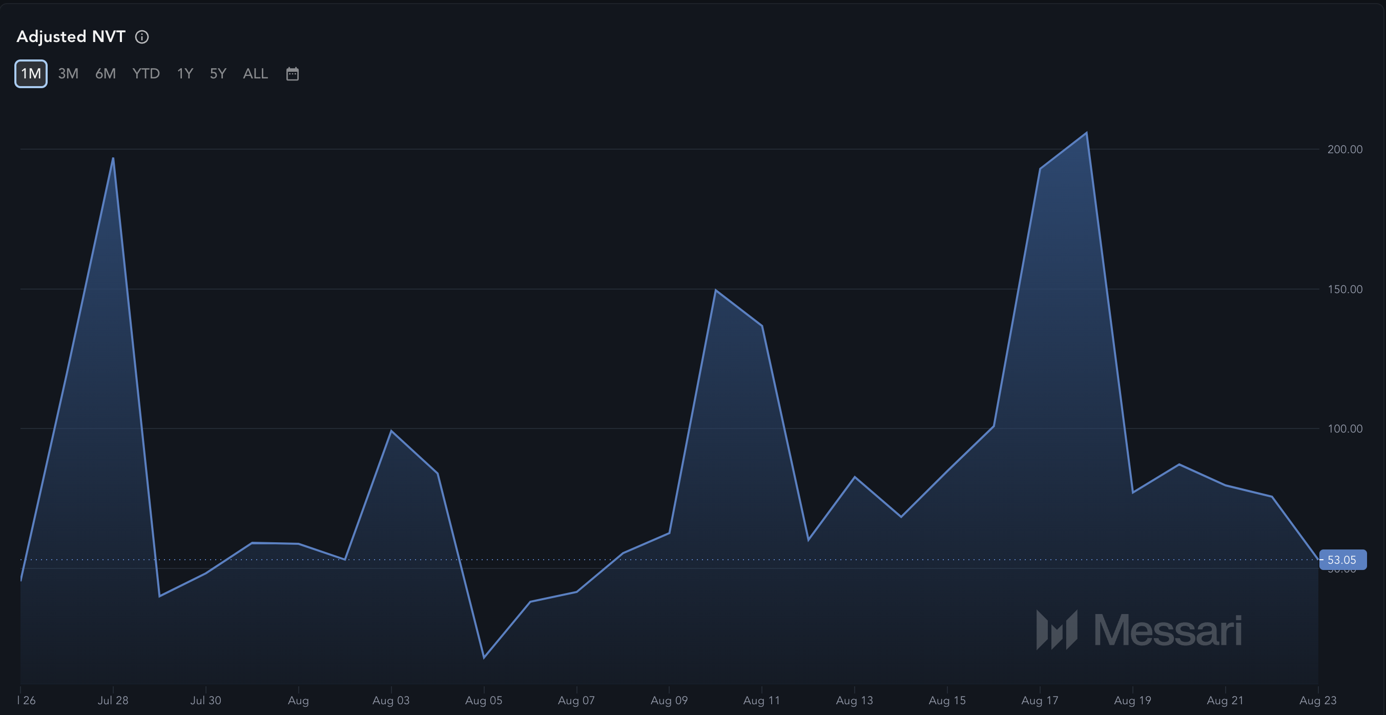 Data dari Messari menguak temuan bahwa rasio Network Value to Transactions (NVT) Ethereum yang disesuaikan telah susut menjadi -53,05. Rasio NVT sendiri mencerminkan apakah kapitalisasi pasar suatu jaringan tumbuh lebih cepat daripada volume transaksinya. Adapun nilai NVT yang tinggi biasanya menandakan aset yang bersangkutan sedang overvalued. Kondisi ini seringkali menandai puncak pasar serta periode overvaluation yang bisa mengakibatkan ambruknya harga.