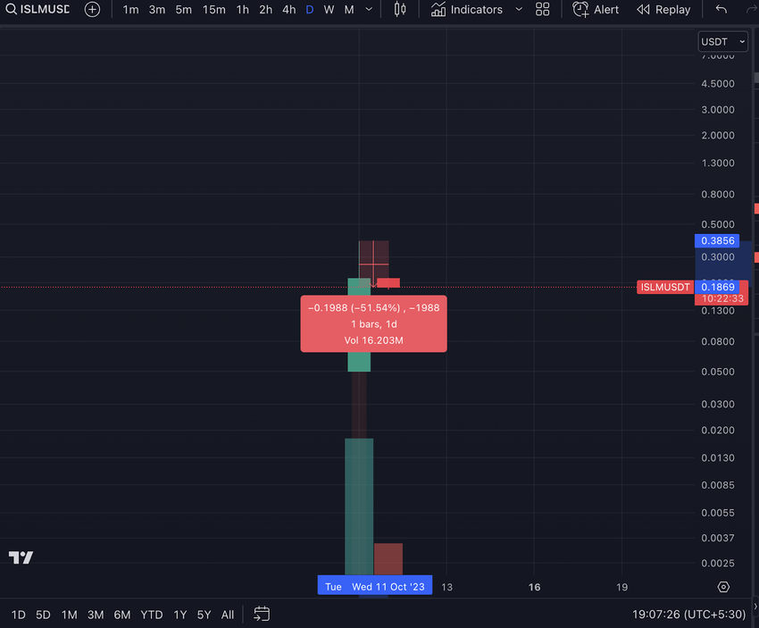 Pada 10 Oktober, proyek ini mengumumkan listing terbarunya di crypto exchange KuCoin. Data dari TradingView menunjukkan bahwa Islamic Coin saat ini diperdagangkan seharga US$0,1869, atau sudah turun lebih dari 50% sejak level tertingginya di hari Selasa (10/10).