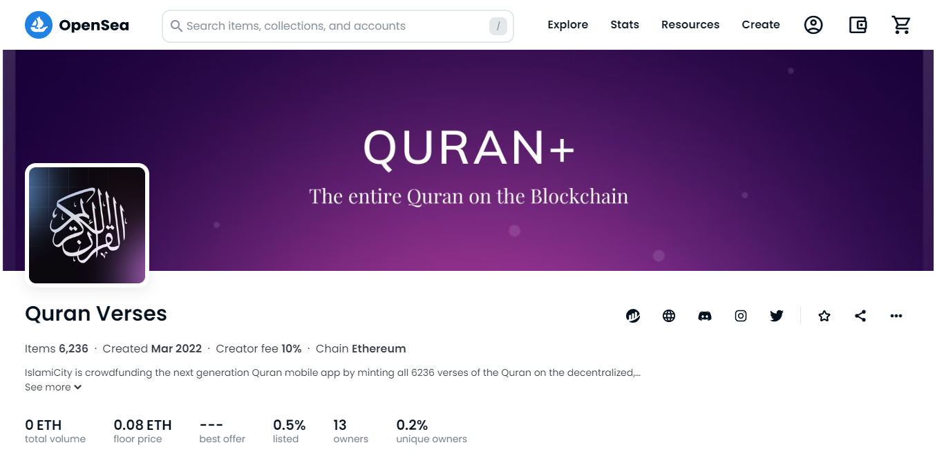 Proyek NFT Al-Quran dari IslamiCity sudah tersedia di salah satu bursa NFT terbesar di dunia, yaitu OpenSea. Proyek itu terdiri dari 6.236 NFT. Setiap NFT diklaim merupakan representasi dari setiap ayat Al-Quran. Tidak hanya itu, informasi yang terdapat dalam aset digital tersebut juga berisi data secara kontekstual tentang masing-masing ayat berikut sejarahnya.