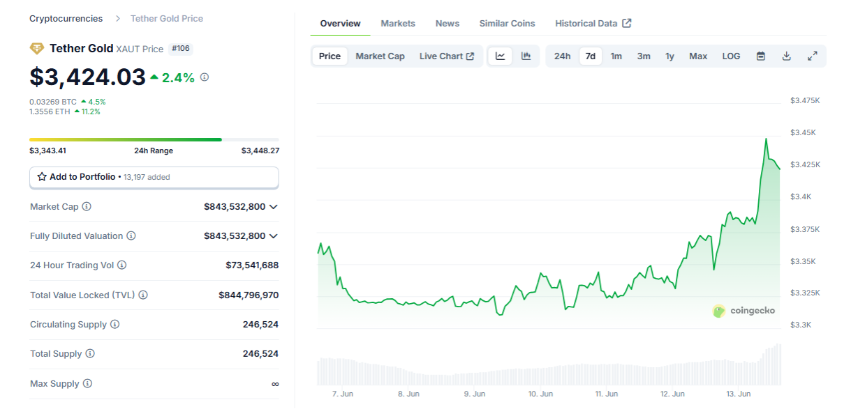 Data CoinGecko mengungkap token PAXG milik Paxos mencatatkan apresiasi 1,7% dalam 24 jam terakhir. Hal yang sama juga terjadi pada XAUT yang menorehkan pertumbuhan harga 2,4% dalam 24 jam terakhir.