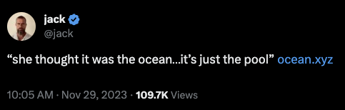 Sementara itu, Jack Dorsey, co-founder dan mantan CEO Twitter serta pemimpin Block Inc., menyebut bahwa OCEAN memecahkan masalah yang dirasakan semua Bitcoiner. Masalah itu adalah sentralisasi lebih lanjut dari Bitcoin mining pool yang dapat mengganggu Bitcoin.