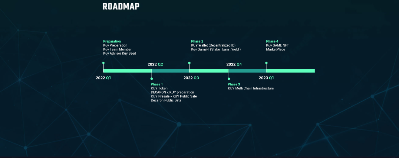 Pada kuartal 4 tahun ini, rencananya akan mulai diluncurkan Kuy Multi Chain Infrastructure dan di tiga bulan perdana tahun depan akan dirilis Kuy Game NFT Marketplace.