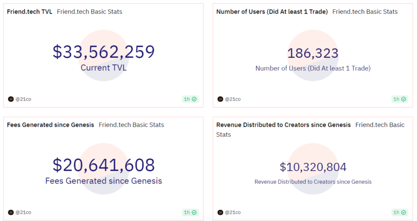Sejak awal, friend.tech telah menarik lebih dari 100.000 pengguna, menyalurkan arus masuk lebih dari US$200 juta, dan menghasilkan lebih dari US$10 juta.