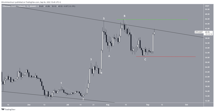 Ethereum Classic (ETC) telah berhasil keluar dari pola jangka pendeknya. Saat ini, harga ETC sedang mendekati area resisten utama di titik US$45.