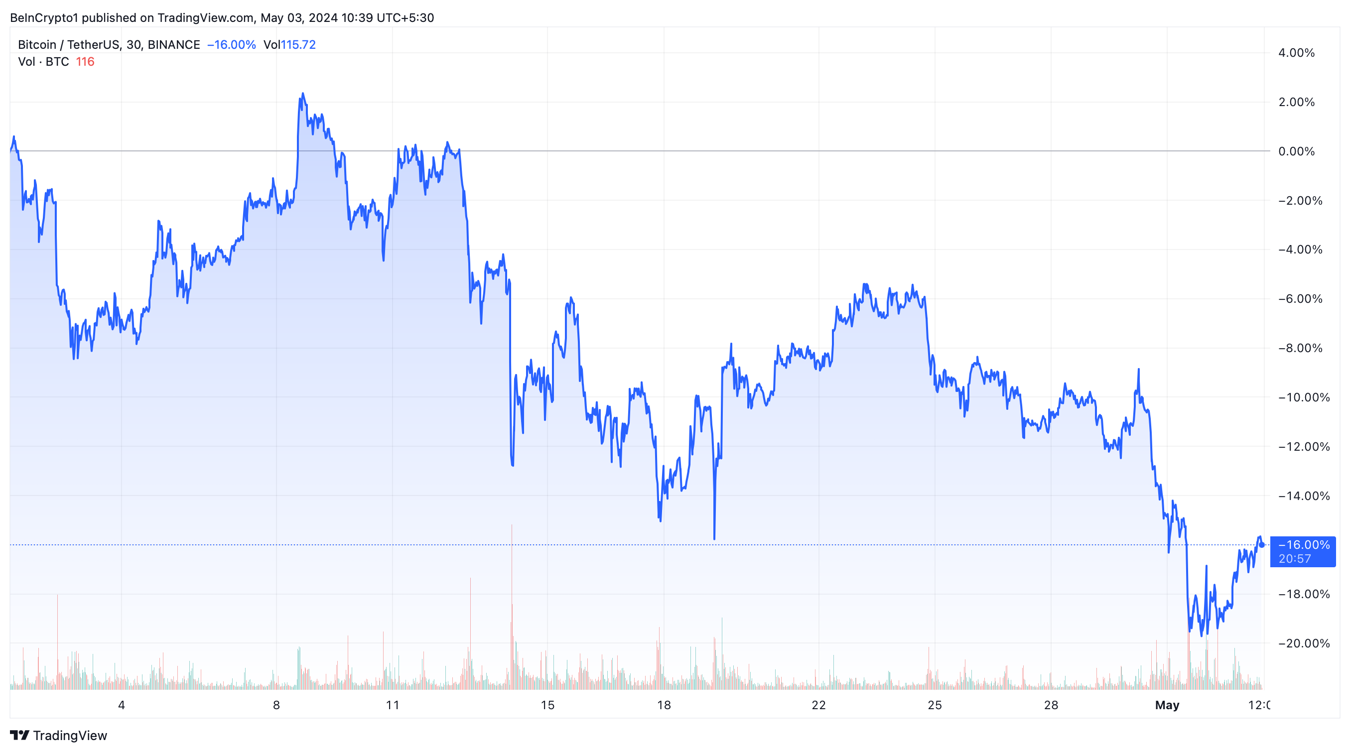 Namun, terlepas dari optimisme sebelumnya di bulan Agustus 2023 bahwa aksi jual sudah mulai mereda, perkembangan terbaru menunjukkan perubahan tajam. Di bulan April, Bitcoin telah turun drastis sebesar 16%. Tren ini menandai penurunan bulanan terparahnya sejak Juni 2022. Akibatnya, penurunan ini juga bertepatan dengan kurangnya minat di antara investor ritel, yang telah menarik diri dari pasar kripto serta pasar saham.