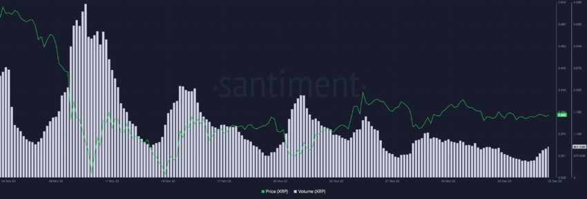Volume perdagangan XRP mengalami peningkatan yang stabil. Alhasil, hal ini bisa menjadi pertanda bahwa trader ritel saat ini tengah merencanakan sesuatu. Meskipun tidak ada euforia ritel menonjol yang dapat membantu aksi harga, kenaikan volume dapat menyebabkan volatilitas harga XRP yang diinduksi ritel menjadi lebih tinggi.