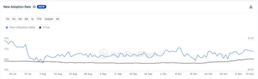Bahkan, tingkat adopsi pengguna baru ADA mencapai puncak bulanan 32,3% pada tanggal 9 November. Seperti yang digambarkan di bawah ini, angka tersebut tetap berkisar di atas 30% dalam lima hari berikutnya, suatu prestasi yang hanya tercapai delapan kali dalam tiga bulan terakhir.