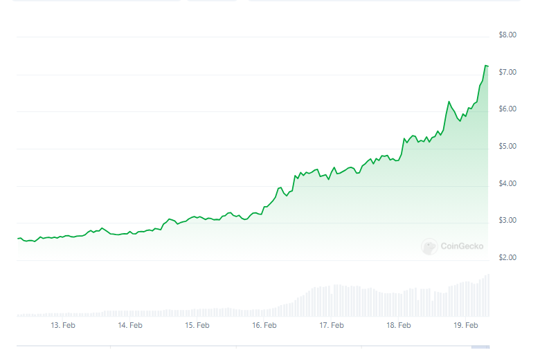 Merespon hal itu, harga native token Worldcoin (WLD) langsung ngacir. Data CoinGecko menyebutkan dalam 24 jam terakhir, harga token WLD sudah naik 27,1%. Sementara itu, jika diukur dalam rentang waktu 7 hari terakhir, harga token WLD telah menguat 164,7%. Lalu, bila ditarik lebih jauh lagi, harga token WLD sudah sukses terkerek 205,1% dalam 14 hari terakhir ke level US$6,74.