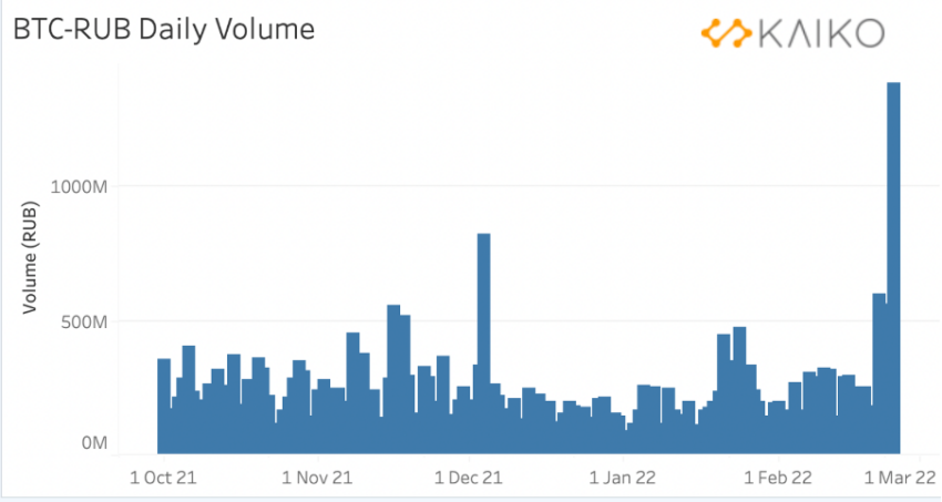 Sementara itu, seperti yang terlihat dari pasangan perdagangan Bitcoin/Rubel (BTC/RUB), terdapat perdagangan Bitcoin yang sangat signifikan di wilayah Rusia. Metrik yang dicatat oleh penyedia analitik kripto Kaiko menunjukkan bahwa volume Bitcoin berdenominasi Rubel (RUB) berhasil mencetak hampir 1,5 miliar rubel sekitar periode tersebut.