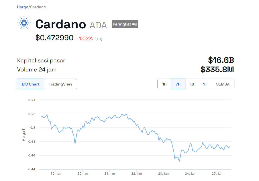 Sementara mengenai harganya sendiri, menurut analisis teknikal terbaru dari BeInCrypto, terlepas dari peningkatan dalam aktivitas pengembangan jaringannya, harga ADA masih sangat terpengaruh oleh tren pasar secara umum.