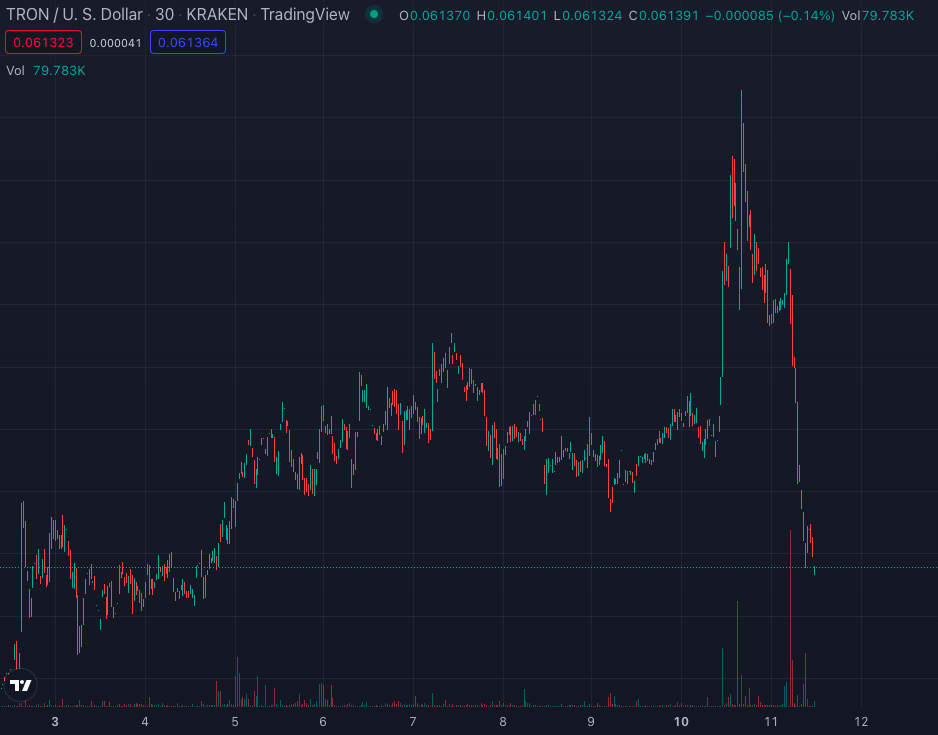 Tidak hanya token HT, native token TRON, TRX, juga sempat mengalami lonjakan tajam usai muncul pemberitaan dari WuBlockchain. Pada hari Senin (10/10) pada pukul 07:28 WIB, harga TRX berada di level US$0,0624.