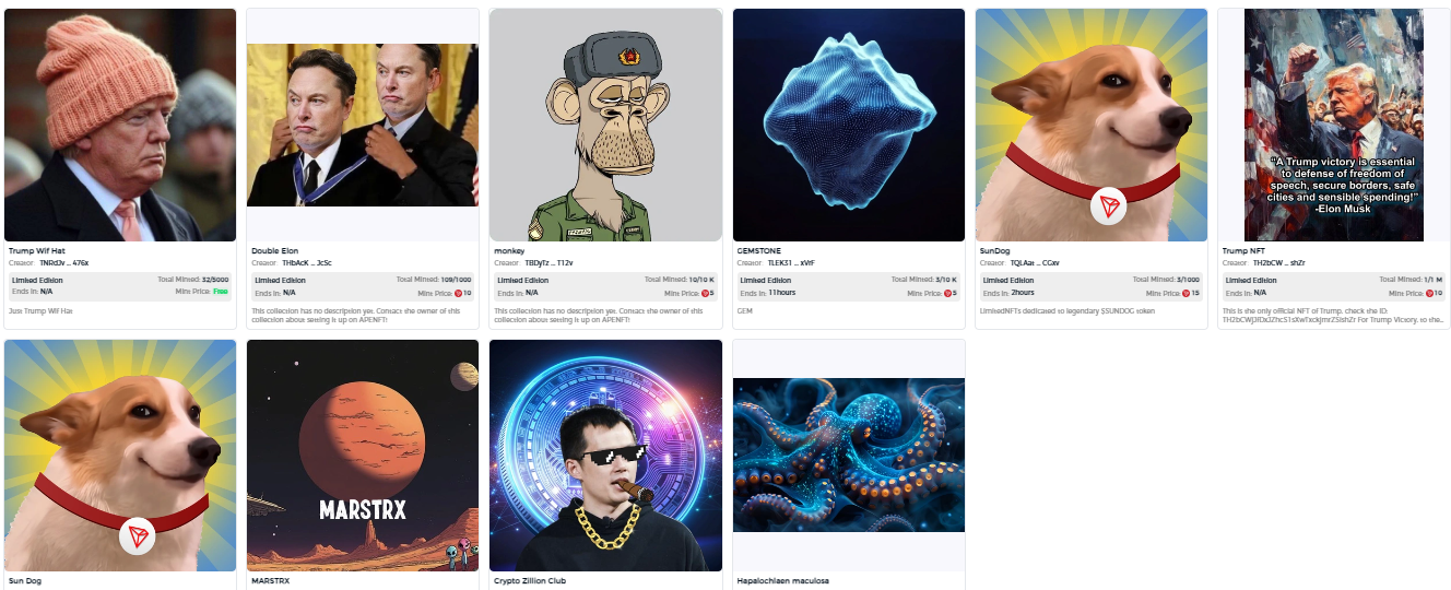 Yang menarik, rangkaian koleksi digital di NFT Pump mencakup representasi dari selebriti terkenal. Ini termasuk Elon Musk, Donald Trump, Changpeng Zhao (CZ), dan Justin Sun, serta karakter animasi dan gambar GIF.