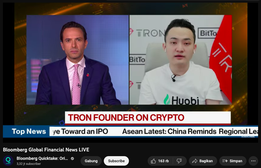 Pernyataan ini disampaikan oleh Justin Sun kepada pihak Bloomberg pada hari Jumat (11/11). Thomas Mackenzie, pembawa acara berita di Bloomberg TV, membuat cuitan yang berbunyi, “Justin Sun memberi tahu saya bahwa dia siap memberikan bantuan miliaran dolar AS kepada FTX.”