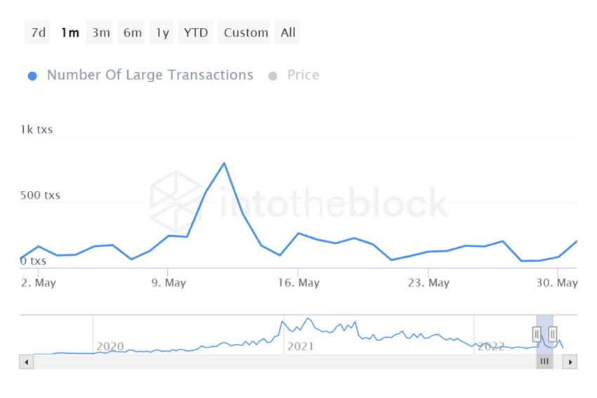 Perolehan jumlah transaksi besar mencapai puncaknya pada tanggal 12 Mei. Pada hari itu, transaksi yang melibatkan BUSD adalah sebanyak 796.000, dengan harga perdagangan US$0.966500.