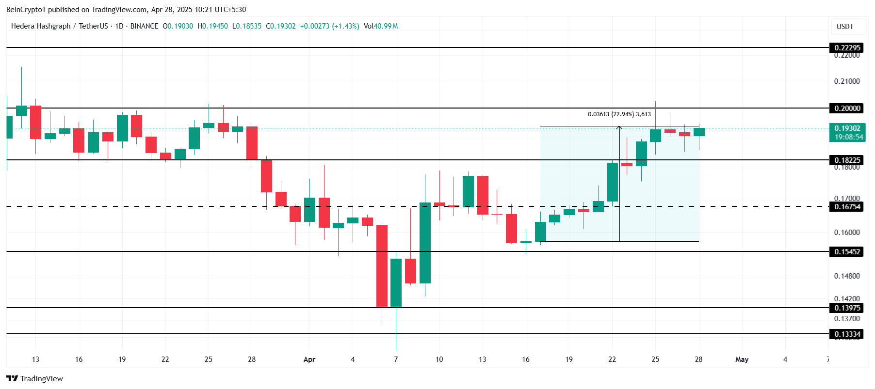 Harga HBAR Bertujuan Menembus US$0,20