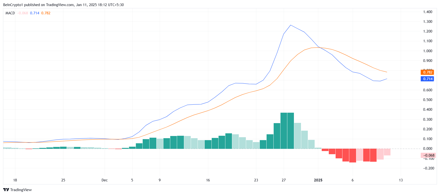 Kenaikan ini mencerminkan upaya aset kripto ini untuk pulih dan membentuk all-time high (ATH) baru. Namun, sentimen investor tetap skeptis, meragukan prospek pemulihan jangka panjang altcoin ini.