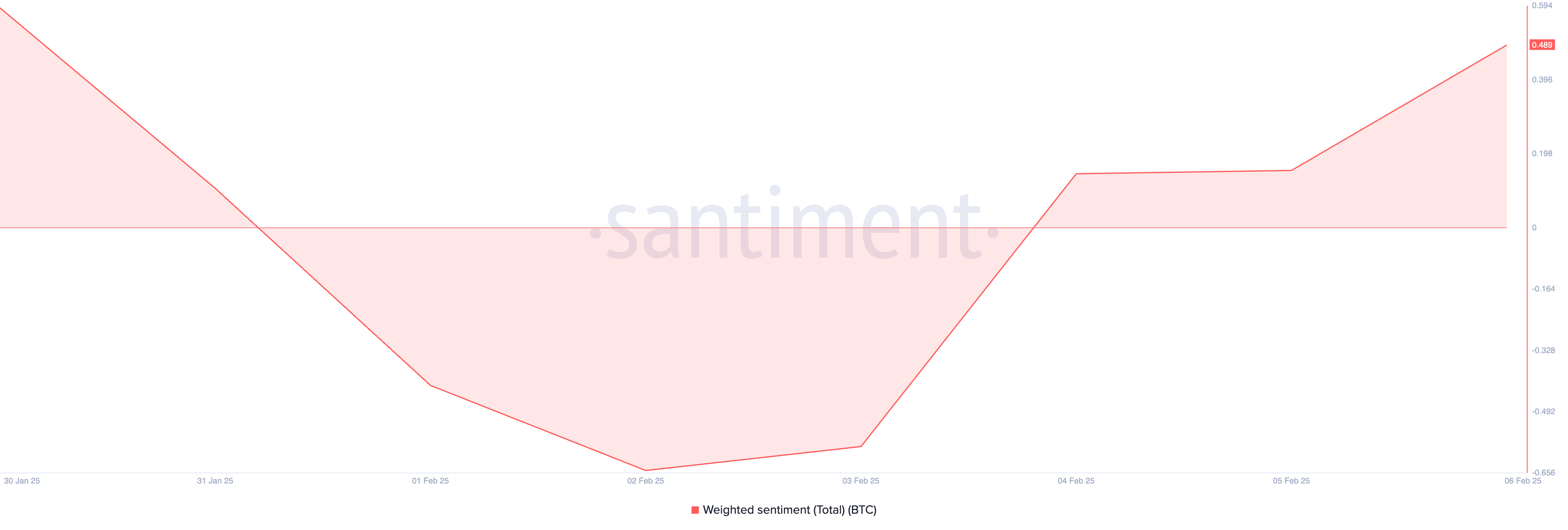 Meskipun diterpa angin kencang di pasar, trader Bitcoin tetap tak goyah dalam mempertahankan pandangan bullish mereka pada aset ini. Sebagai bukti, weighted sentiment atau sentimen tertimbang BTC saat ini masih berada di zona positif, menunjukkan bahwa pasar tetap optimistis akan peluang pemulihan harga dalam waktu dekat.