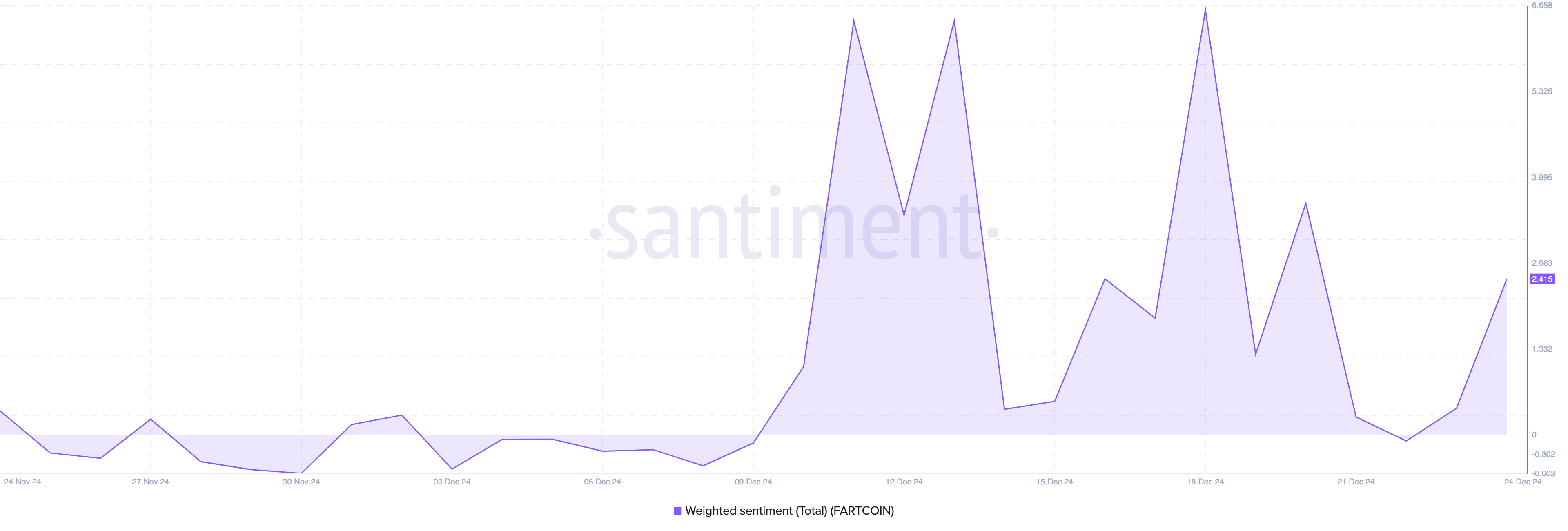Seperti yang ditunjukkan di atas, pembacaan sentimen telah kembali ke wilayah positif, menunjukkan bahwa kebanyakan komentar tentang FARTCOIN sekarang optimistis. Jika tren ini berlanjut, nilai token bisa naik lebih tinggi dan berpotensi mencapai rekor tertinggi baru dalam jangka pendek.