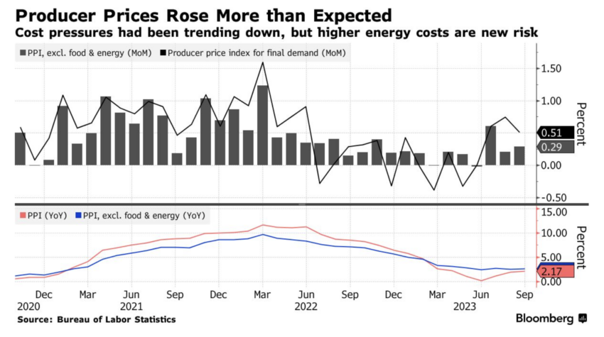 Indeks Harga Produsen (IHP) AS, sebuah ukuran perubahan harga yang diterima oleh para produsen domestik untuk barang-barang jadi mereka, naik untuk tiga bulan berturut-turut di bulan September. Sementara itu, IHP untuk permintaan akhir berada di angka 0,5%, sementara IHP inti, yang tidak termasuk makanan dan energi, naik sebesar 0,3%.