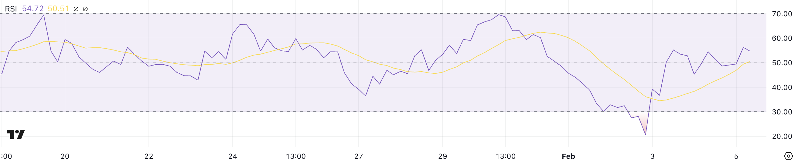 Relative Strength Index (RSI) ONDO saat ini berada di 54,7, pemulihan tajam dari 20,6 hanya dua hari yang lalu. Rebound signifikan ini menunjukkan bahwa tekanan beli telah kembali setelah ONDO sebelumnya berada dalam kondisi oversold yang dalam.