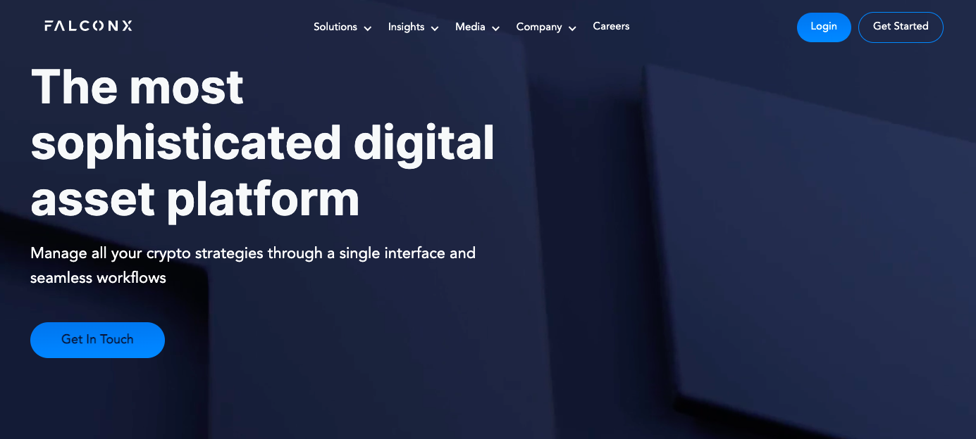 FalconX merupakan platform aset digital yang memungkinkan berbagai institusi mengakses dan mengelola semua strategi kripto mereka melalui single interface dan seamless workflows. Hal ini membuat para klien mudah untuk mengeksekusi trading, credit, dan clearing dalam satu tempat.