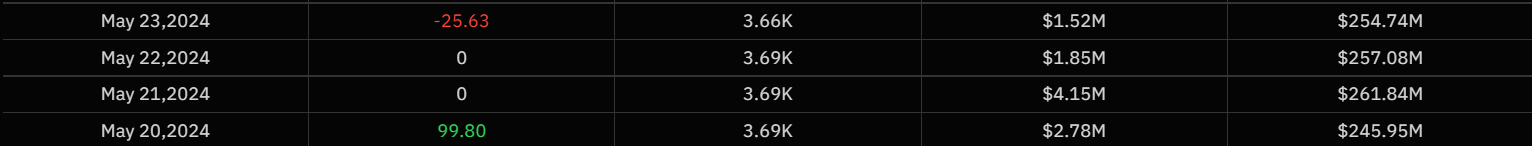 Sementara itu, Grayscale Bitcoin Trust ETF (GBTC) tidak menerima arus masuk di hari yang sama. Ini patut dicatat mengingat tren arus negatif yang beruntun untuk ETF Bitcoin spot AS sejak akhir April hingga awal Mei.