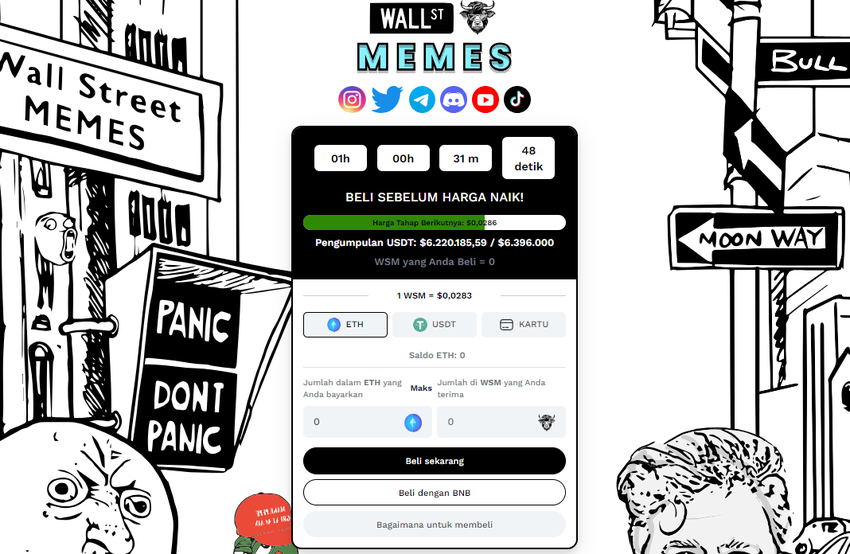 Wall Street Memes (WSM) merupakan salah satu koin meme terbaru yang tengah menjadi sorotan di dunia kripto. Proyek ini menyasar keserakahan di Wall Street dan mengolok-olok kecerobohan para pelaku pasar keuangan tersebut, sambil menyediakan kesenangan dan potensi keuntungan bagi komunitasnya.