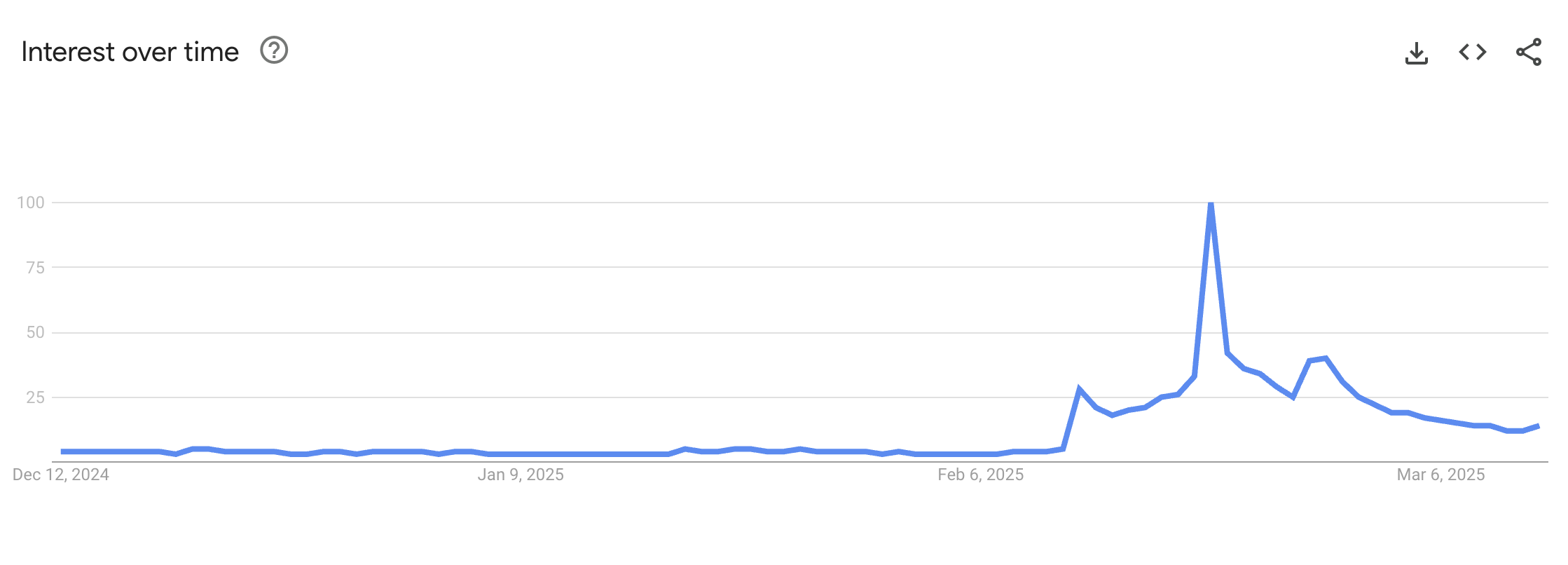 Pada hari peluncuran, minat pencarian mencapai 100, menunjukkan puncak perhatian dan kegembiraan publik seputar acara tersebut. Namun, angka ini telah merosot menjadi hanya 12 pada saat laporan ini, mencerminkan penurunan minat yang tajam.