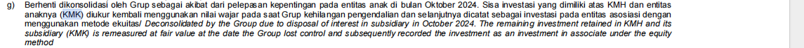 Laporan tahunan GOTO 2024 mencatat bahwa Kripto Maksima Koin berhenti masuk konsolidasi Grup sebagai akibat dari pelepasan kepentingan pada entitas anak di bulan Oktober 2024. Sementara sisa investasi milik perusahaan atas Kripto Maksima Holding (KMH) dan entitas anaknya (KMK) diukur kembali menggunakan nilai wajar pada saat Grup kehilangan pengendalian. Untuk selanjutnya tercatat sebagai investasi pada entitas asosiasi dengan menggunakan metode ekuitas.