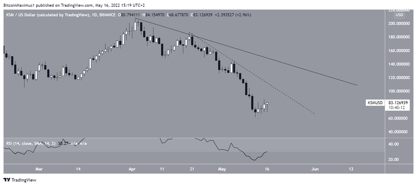 Sementara belum ada tanda-tanda yang menunjukkan bullish reversal akan datang, indikator RSI dalam grafik harian jatuh ke angka 18 di tanggal 11 Mei. Kondisi ini merupakan nilai all-time low baru. Maka dari itu, menurut RSI grafik harian, Kusama tidak pernah dalam situasi oversold seperti ini.