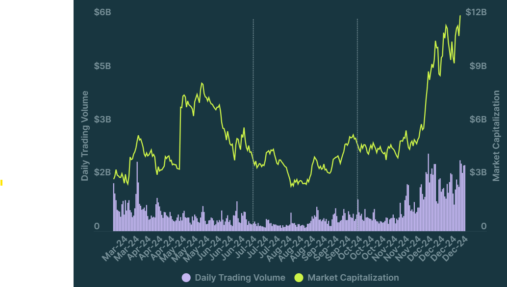 Secara keseluruhan, total kapitalisasi pasar kripto naik 97,7% tahun lalu, berakhir dengan angka fantastis US$3,4 triliun. Namun, momentum ini tidak stabil sepanjang tahun, karena Q3 mengalami beberapa koreksi dan kemajuan yang melambat.
