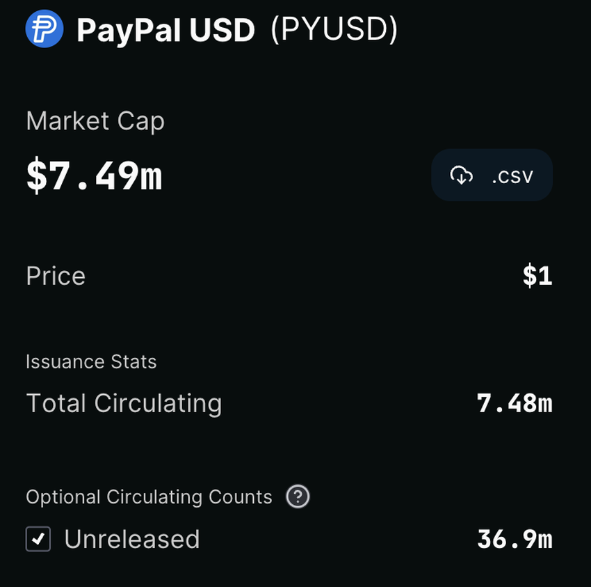 Faktanya, sekitar 36,9 juta token PYUSD masih belum dirilis oleh proyek ini, yang menunjukkan kurangnya adopsi. Porsi yang belum mereka rilis ini mencapai lebih dari 80% dari total token yang ada.
