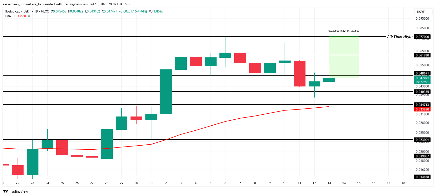 HOSICO mencapai all-time high (ATH) baru minggu lalu di US$0,077 tetapi sejak itu turun, saat ini diperdagangkan di US$0,047. Meme coin ini sekarang sekitar 62% dari mencapai ATH-nya lagi.