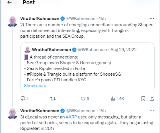 Hal lain yang membuatnya menarik menurut WratofKahneman adalah, keterlibatan Tranglo di dalam ShopeePay. Tranglo merupakan salah satu mitra Ripple dalam membangun platform untuk ShopeeSG. Sehingga kolaborasi antara dLocal dan ShopeePay dipandang sebagai sebuah langkah strategis bagi kemajuan Ripple di kawasan Asia.