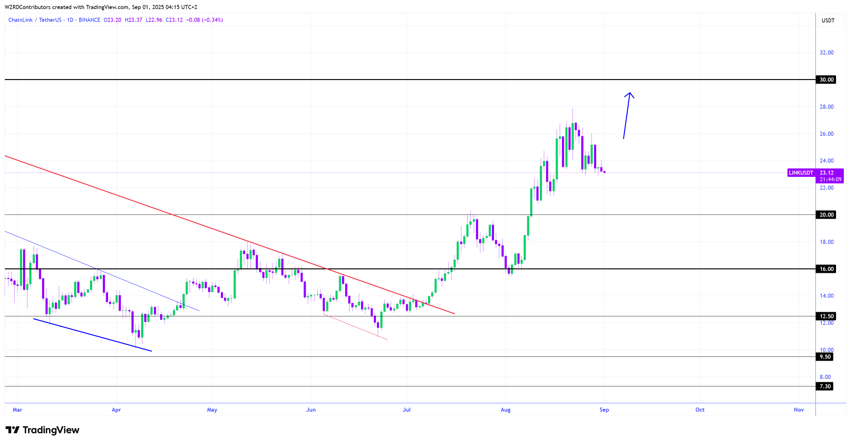 Namun, candle bulanan terbaru LINK ditutup dengan kuat bullish. September diperkirakan menjadi fase naik, dengan breakout di atas US$24,85 berpotensi memperpanjang reli lebih jauh.