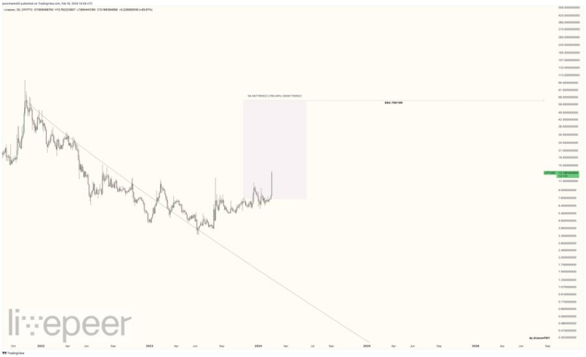 “Harga LPT terbang tinggi, membentuk candle besar menuju target US$64,70 dan masih berpotensi untuk melesat lebih jauh! Dengan target ini, Livepeer berpotensi naik 369% lagi untuk mencapainya, dan sejumlah koreksi akan membantu proses ini,” ujar analis Javon Marks.