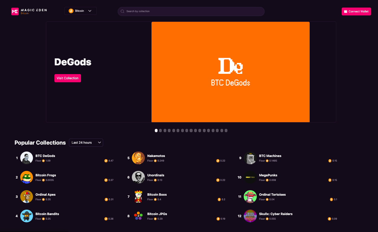 Magic Eden, marketplace non-fungible token (NFT) terbesar di jaringan Solana, pada hari Senin (20/3) mengumumkan bahwa mereka meluncurkan marketplace Ordinals yang merupakan NFT di jaringan Bitcoin.