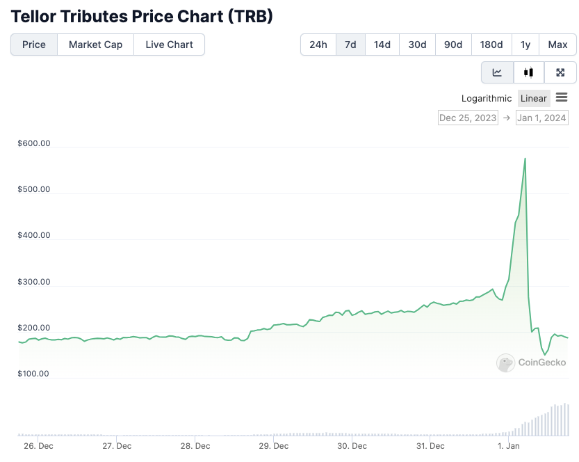 Skema pump and dump token Tellor (TRB) mewarnai dinamika pasar kripto di saat malam pergantian tahun dari 2023 menuju 2024.