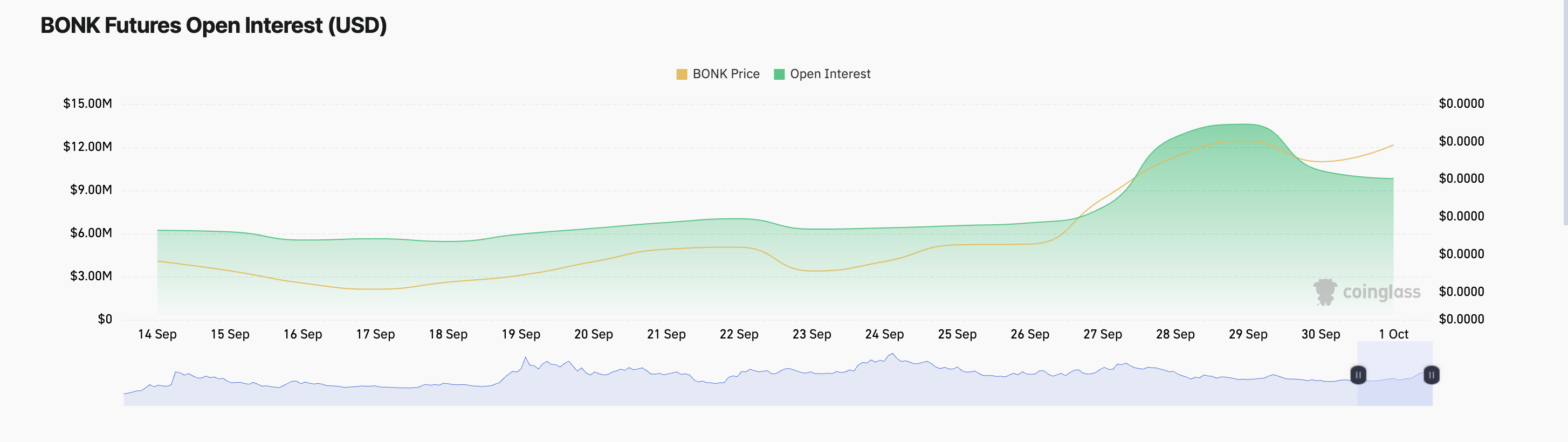 Penilaian pasar derivatif BONK telah mengungkapkan penurunan dalam open interest futures token selama beberapa hari terakhir. Sejak mencapai level tertinggi tiga bulan sebesar US$15 juta pada 29 September, open interest futures meme coin, indikator yang melacak jumlah kontrak futures yang beredar, telah turun sebesar 29%. Pada saat tulisan ini dibuat, jumlahnya mencapai US$10 juta.