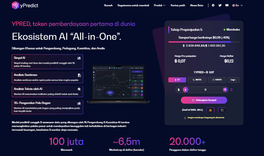 Selanjutnya ada yPredict ($YPRED), sebuah platform berbasis Polygon yang bertujuan untuk merevolusi sektor perdagangan kripto menggunakan analitik berbasis kecerdasan buatan (AI).