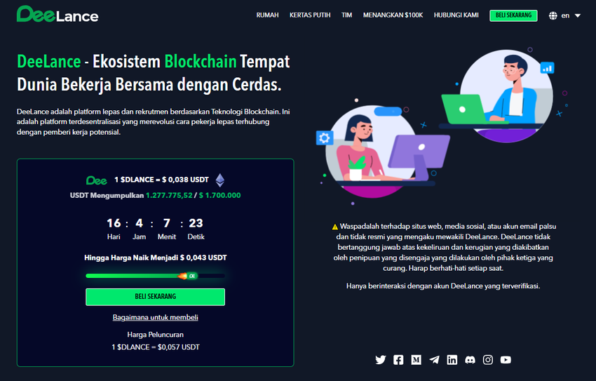 Namun, investor yang merasa terlambat masih dapat memperoleh token $DLANCE menjelang peluncuran platform ini, dengan harga token US$0,043 saja.