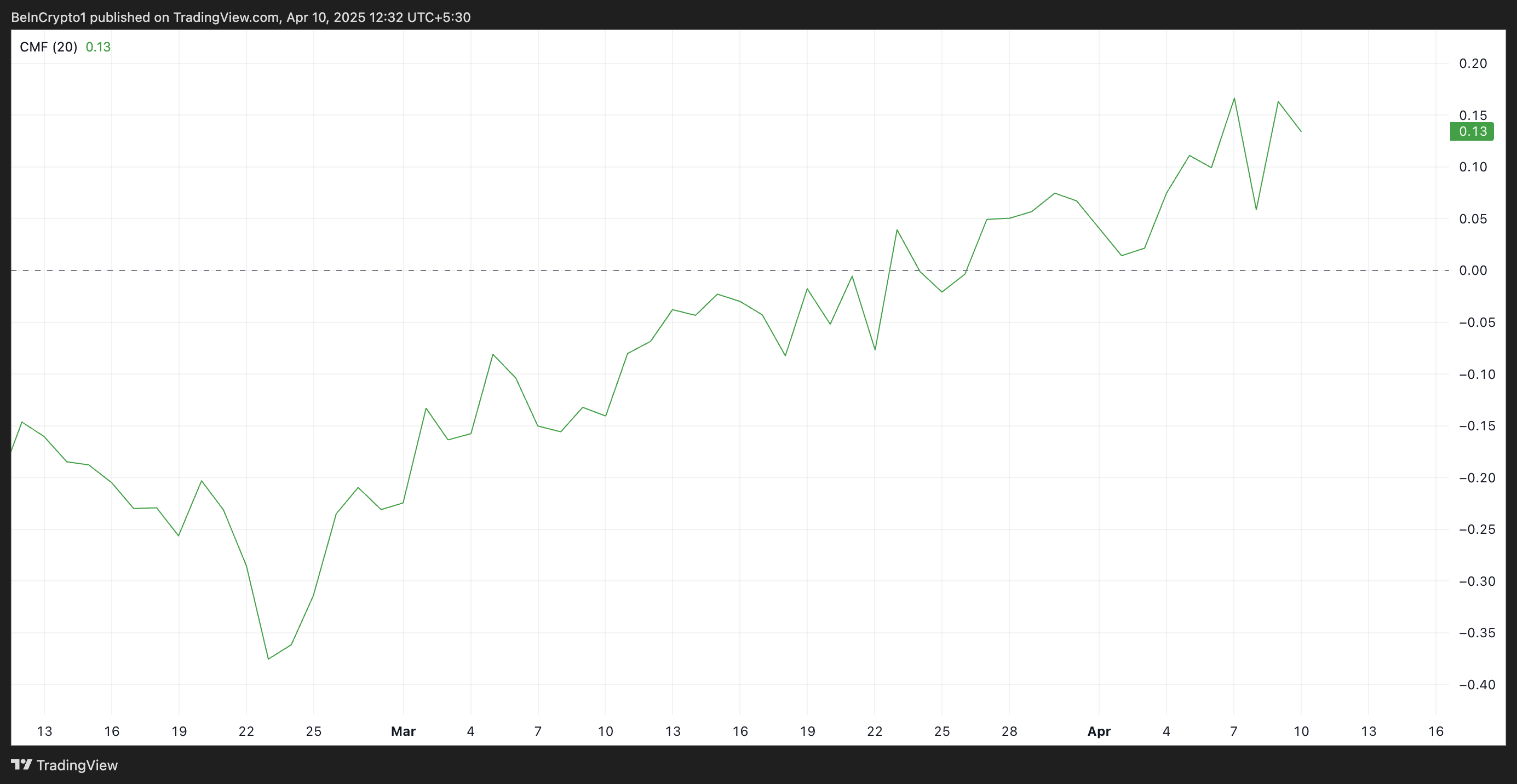 SponsoredSelain itu, Chaikin Money Flow (CMF) altcoin ini tetap di atas garis nol, mengonfirmasi preferensi untuk akumulasi FARTCOIN ketimbang penjualan. Pada saat penulisan, indikator momentum yang mengukur bagaimana uang mengalir masuk dan keluar dari suatu aset ini berada di 0,13.